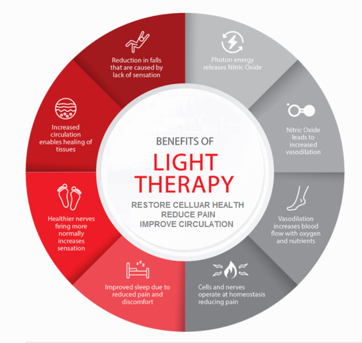 Red light therapy activates cellular immunity, promoting healthier cells and accelerating short-term recovery. It assists in eliminating toxins, improving healing processes, and enhancing overall well-being.